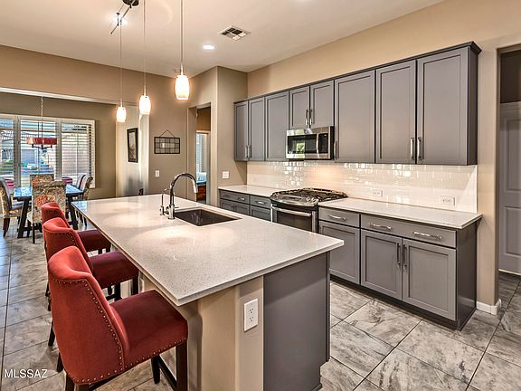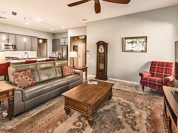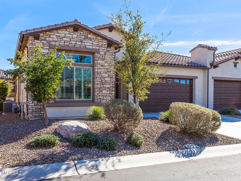 * Leave the exterior maintenance and yard work to the HOA and begin enjoying all SaddleBrooke Ranch has to offer the moment you arrive at your Villa! This Lago model, completed in 2017 is 4 years young. Upgrades throughout, cabinets, counter tops, appliances, pavers! Rolling Shutters on patio provide privacy when desired! The common area also provides ample space behind your rear courtyard with tastefully done landscaping maintained by the homeowner's association. The kitchen has SS appliances, lots of cabinets with soft close drawers, and the counter space will surprise you. Laundry room cabinets provide additional storage and the linen cabinet off the Master is a dream. The large den with double doors is great for your office, library or?
