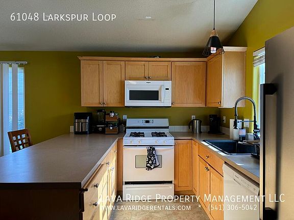 Discover comfortable living in this charming single-level home, now available for rent. This delightful property features three bedrooms and two bathrooms, perfectly accommodating both individual and family needs. With an interior space spanning 1,098 square feet, each room is thoughtfully designed to maximize comfort and usability. Located strategically to enhance your lifestyle, this home places you within a mere 10-minute drive from popular shopping destinations like Costco and Whole Foods, as well as the vibrant scenes of the Old Mill District. Health and wellness needs are also conveniently met with the St. Charles Medical Center close by. Enjoy leisurely walks and the promise of outdoor activities with the upcoming Alpenglow Park nearby. The property itself welcomes you with an inviting front porch, setting the stage for a home that's as warm and welcoming as it is functional. Make this house your peaceful retreat amidst the conveniences of Bend, Oregon. Six Months Lease 1 Story Appliance Dishwasher Appliance Garbage Disposal Appliance Microwave Appliance Oven/Range Appliance Refrigerator Carpet Cat Friendly Ceiling Fan(s) Central Heating Only Dog Friendly Double Car Garage Driveway Electricity Resident Responsible Garage Attached Garbage Resident Responsible Garden Beds Gas Resident Responsibility Gas Fireplace Heating Forced Air Internet Residents Responsibility Landscape Resident Maintains Laundry Room Lawn School Caldera High School High Desert Middle School Re Jewell Elementary Sewer Resident Responsible Stainless Steal Appliances Under Hoa Management Unfurnished Vaulted Ceilings W/D Dryer Hook Up Electric Walk In Shower Washer/Dryer Owner Maintains Water Resident Responsible Wndw Coverings Roll Up Blinds