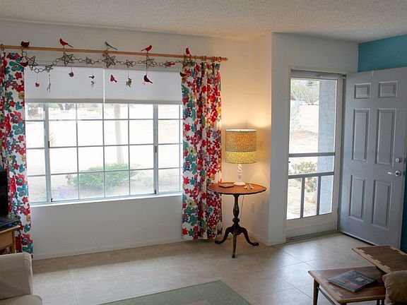 Immaculate, cozy home just minutes from Joshua Tree National Park! Located on a quiet street in Upper Friendly Hills, this lovely residence is move in ready. Enjoy 18 inch ceramic tile floors throughout, tasteful granite kitchen counters, and fine hard wood cabinetry and custom paint. Relax on your back patio and enjoy the views and peace of the natural desert surroundings. This 3 bed 1 bath home is awaiting a new owner to appreciate this little slice of desert paradise!!