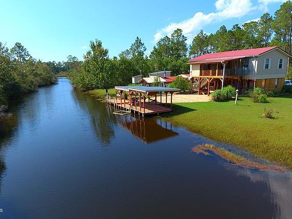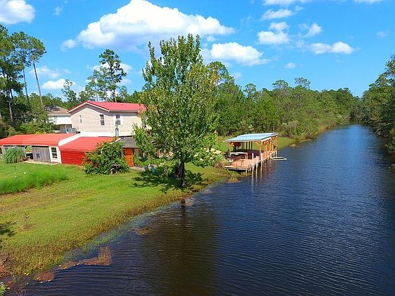 Waterfront home offering apx 200ft water frontage! Fantastic dock with sink and power. Just hang your swing and enjoy the view! Detached carport doubles as a workshop and connects to an additional area that houses a wood burning fireplace and leads to green house. Ground level under home is paved with plenty of space to park the car or gather a crowd - there's room for them to park too with double driveways! Walk the yard and you'll find concord grapes & asparagus and orange, apple, lime, lemon, cherry, plumb, and satsuma trees. Ready to head upstairs? Take the elevator! ALL appliances stay - including washer and dryer. Wood laminate flooring through most of the home for easy cleaning. Private setting and the perfect place to get-a-way. Make your appointment before it's gone!