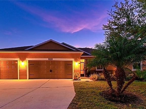 Don't miss your chance on this beautiful 4 bedroom, 2 baths with a bonus den home overlooking as an oversized premium lot. NO CDD'S! Open floor plan with great room, family and dining room. Open kitchen with large center island, stainless appliances, and tile floor. Master bedroom with large bonus space, walk-in closet, master en-suite with dual sinks, separate garden tub, and shower. Large covered Lanai area with outdoor space for entertaining and relaxing. This home also comes with hurricane shutters. The community of Sheffield Glenn is located across the street from Buffalo Creek Middle, Virgil Mills Elementary, Buffalo Creek Park, golf courses, grocery stores, shopping, dining, and I-75. Call for your private showing today!