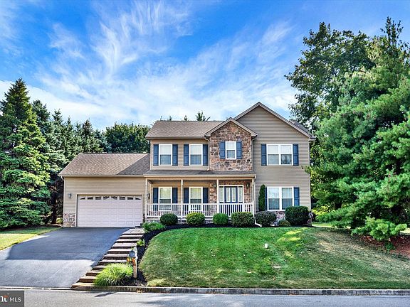 Welcome to this stunning home situated in the desirable Sunny Hill Farms community! Totaling over 3,179 square feet of finished living space, this property offers a wealth of features that are sure to impress. As you approach, you will be immediately charmed by the covered front porch, a perfect spot to unwind and enjoy the fresh air. Step inside the foyer with hardwood floors that leads into the formal dining room with hardwood floors, chair railing, crown molding, window treatments and tray ceiling, a space designed for memorable gatherings. Front living room with carpet, window treatments and chair rail lead you through French doors into the cozy family room where you can relax by the gas fireplace on those chilly evenings. The spacious kitchen features an eat-in breakfast area, outdoor access, granite countertops, tile backsplash, tile floors and an island for plenty of prep space. Make your way upstairs to find the primary bedroom complete with vaulted ceilings, ceiling fan, oversized walk-in closet and an attached full bath with double vanity. The additional bedrooms and a full bath with double vanity provides ample space for family and guests. Upper level laundry. Head downstairs to the finished walk out basement which offers versatility with additional living space and a dedicated gym area. Outside, a delightful patio overlooks the backyard, a great space for outdoor enjoyment. Two car garage. Conveniently located to shopping, dining and entertainment. A joy to own!