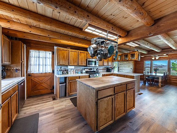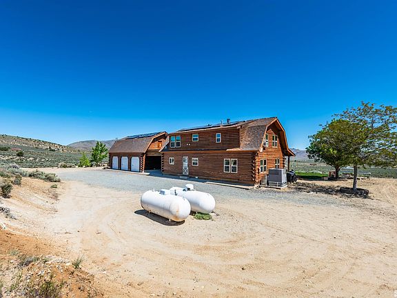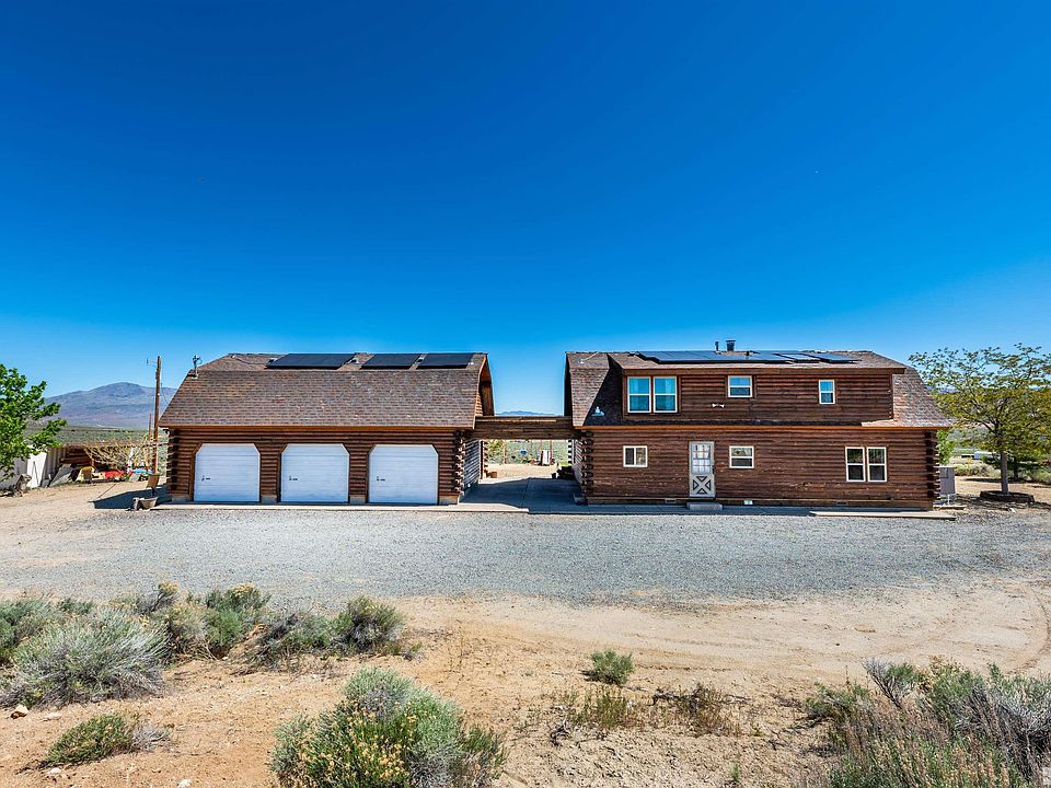Nestled amidst the tranquil embrace of nature, this picturesque log cabin and horse property embodies rustic charm and modern comfort. While new windows enhance breathtaking vistas and new flooring throughout. The main bedroom, a tranquil retreat, boasts an updated ensuite bathroom, where sleek fixtures and contemporary design elements elevate your daily routine to a spa-like experience. Full RV hook ups including a 30 amp and cleanout. Equipped with solar and a backup generator., To add to it there is 864 square feet of blank canvas above garage, not included in square footage of home. perfect for additional bedrooms, or an amazing bonus room. Conex box conveys with property, as well as cameras located throughout home.