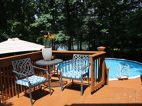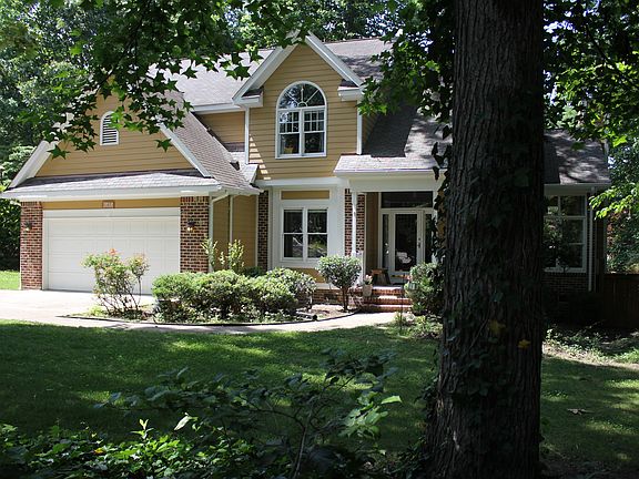 5 bedroom home with lake view and swimming pool on a quiet cul de sac lot, double sided staircase, vaulted ceilings in the living room, large his/her walk in closet in master bedroom with sitting room, close to 540 for easy access to RTP. Listed with Allen Tate Realty.