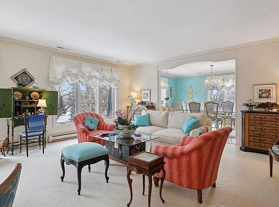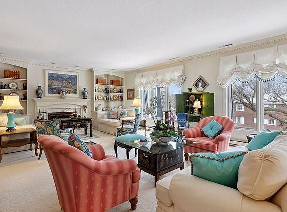 Delightful, richly detailed, exceptional room sizes (for easy transition), and streaming with natural light from this top floor, one of a kind residence. An extensive renovation resulting in grand sized formal rooms plus large family room and solarium. The 3 baths have been reimagined with an especially large powder and en-suite baths. There are both formal and informal dining in large center isle kitchen, extensive built-ins and millwork. Mostly hardwood and hard surface floors and massive windowscapes throughout. Whitehall is noted for its gathering spaces on each floor (newly redone), extra wide, wainscoted hallways, gorgeous grounds with pool and cookout cabana, plus live in caretaker. Boutique building across from Bredeson Park and walk/bike paths in one of Edina’s most upscale single family neighborhoods, free from commercial, high density, yet 5 minutes to services, grocery, dining and community amenities. 2X the space, 4X the windows, extraordinary quality and maintenance. Only one!
