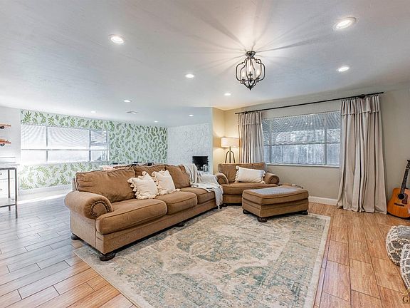 Beautifully renovated 4 bedroom, 2 bathroom home (1,757 sf) on a quiet street in Park Stockdale. This home has been almost completely renovated, including new exterior and interior paint, canned lighting, wood-like tile flooring throughout and an updated kitchen and bathrooms. The floorplan is very open with a huge family room (with a fireplace) and dining room area, and a separate living room open to the kitchen. The gourmet kitchen features white cabinets, quartz counters, a farmhouse sink, newer stainless-steel appliances, subway tile backsplash and a moveable island with a poured concrete counter. There is also a large walk-in pantry. The spacious master suite includes a lovely new vanity with a quartz counter, new hardware, a designer mirror and new lighting. The other bathroom boasts dual vanities with a quartz counter, new lighting and white cabinets. This is a great opportunity to own an updated home with modern amenities in the desirable Park Stockdale neighborhood.