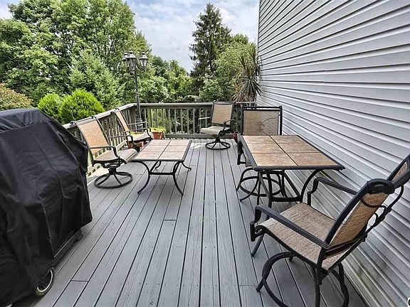 Beautifully decorated just waiting your personal touch. This 3 bedroom, 2.5 bath home is bursting with open space & natural light. 10 ft ceilings on 1st floor & vaulted ceilings in foyer & great room will just wow you! Den or sunroom off great room leads to deck. Second deck off kitchen & both have views of woods behind home. Finished lower level with mounted TV & movie screen is plumbed for full bath, just waiting fixtures & tile. A truly must see home with a home warranty!