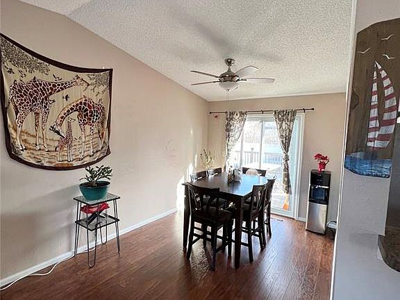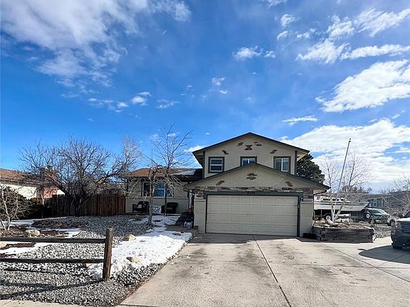 This beautiful home has 1 primary bedroom and 2 additional bedrooms upstairs. Updated open concept kitchen with stainless steel energy efficient appliances, tile backsplash, and lights under cabinets. A separate dining area and large living room with vaulted ceilings. The garden level basement boasts a family room, crawl space for your storage and a separate entrance to the backyard. A deck with an included pergola, a large fenced yard, trampoline will stay. Being a corner lot there is plenty of parking including a two car attached garage plus an additional RV space, an additional fenced in parking spot with a carport, and a storage shed. Home has a brand new electrical panel. Walking distance to schools and parks. There are amazing views of Pikes Peak from your front door, West facing windows and back patio. The RING doorbell will stay.