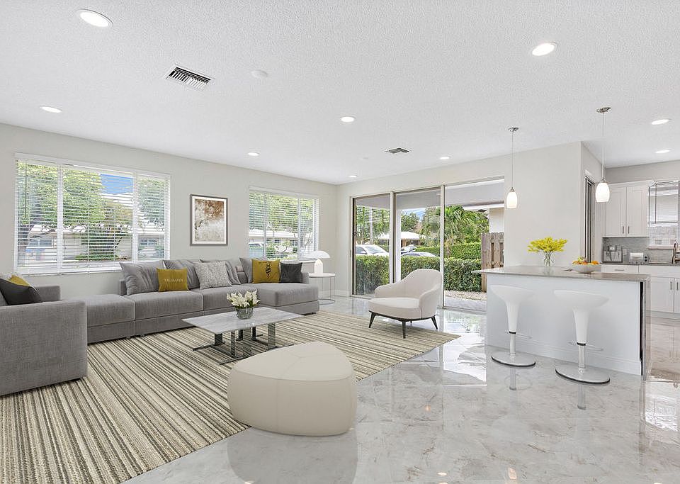 AGENTS ADD YOUR COMMISSION MLS #A10634520 Completely remodeled modern 3 bedroom, 2.5 bathroom & 2 car garage home features updated kitchen with quartz counter tops, stainless steel appliances & wine fridge. Beautiful updated bathrooms. Walk-in closets. Split bedroom floor plan. Marble & wood flooring throughout. Corner house. Covered patio with garden view. A must see!!