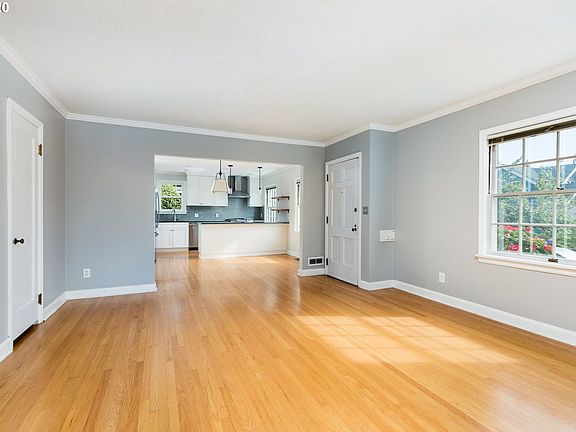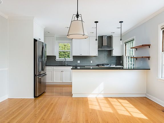 PIEDMONT MODERN: 1941 BUILT TO LAST. Handsome light & bright Cape Cod style home that will not disappoint! Open floor plan: new kitchen - great design! Hardwood & fir flooring. Gorgeous windows - keen light throughout. 2 bedrooms on the main floor + master bedroom up. Unfinished basement - perfect for storage or remodel to suit. Mature large backyard & detached garage. Great city location on desirable NE Garfield. Peninsula Park in Summer!