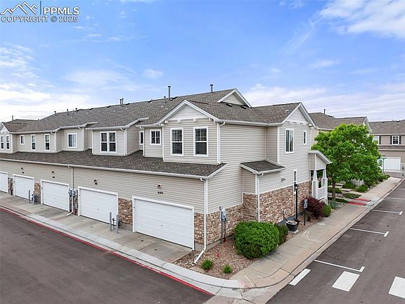 Wonderful 2 bedroom, 2 bath townhome with attached 2 car garage with built in storage. This townhome shows like a model and features Mountain Views out of multiple windows. This south and west facing end unit gets lots of natural light and afternoon sun. The Hoa provided landscaping, snow removal , green space and pet friendly. Located in close proximity to shopping, schools, hospital. Its location adds easy access to Powers Corridor and commute friendly to employers and military bases.