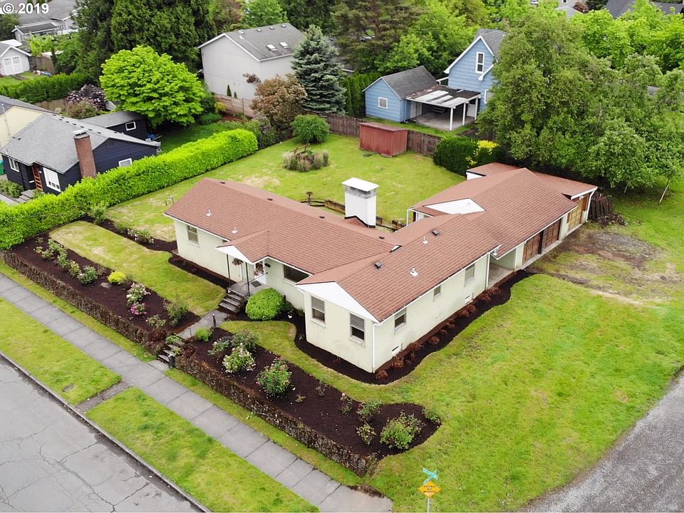 Unique 50s ranch with rare 3-car garage in SE Portland. So much potential! Sits on 100x100ft lot (zoned R2.5), only one block off of Woodstock Blvd. Clean and move-in ready. Newer roof. Mature rose bushes in front. Hardwood floors in living room with fireplace. Main floor has two bedrooms and a separate laundry room with utility sink. Full size basement with fireplace and separate entrance, ready to be finished. May be ideal for second residency.