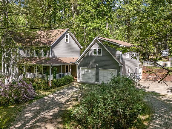 Discover your private oasis at 6105 Splitrock Trail, an incredible home nestled on a stunning 1.31-acre wooded lot in the sought-after Lynnhaven neighborhood of Apex. This property boasts an outstanding blend of tranquility and convenience, with excellent schools, no HOA dues, and no city taxes! Recent updates include new siding and windows added in 2021, ensuring both beauty and energy efficiency, as well as insulation ('24), drywall ('24) & epoxy flooring ('20) in the garage and so much more! As you approach this gracious home, you'll be greeted by a charming wraparound front porch, perfect for relaxing and enjoying the serene surroundings. Step inside to find gorgeous hardwoods throughout the main living areas, with the exception of one bedroom and bonus areas. The spacious family room offers seamless access to a screened porch, where you can savor wooded views and fresh air. And you catch those views from any of the windows from the bedrooms on the second floor. The finished third floor provides a versatile space for both work and play—currently used as a crafting oasis and kids' bonus area—complete with ample walk-in storage to keep your belongings organized. You'll also love the dedicated fitness gym above the detached garage, which features a unique functioning rock climbing wall—perfect for adventurous fitness enthusiasts! For outdoor fun, this property features a basketball court and a fenced backyard equipped with a firepit, ideal for cozy gatherings under the stars, as well as garden areas full of veggies and herbs. Chickens are welcome and protected in the solid chicken coop ('24), offering a unique homesteading opportunity. The circular driveway and play pad enhance convenience and functionality, while the detached pergola deck invites you to unwind and immerse yourself in nature—there's even room for a hot tub! Situated just minutes from 540 and Crossroads, this home feels like a retreat in the heart of the woods while remaining close to all the amenities Apex has to offer. This is truly a must-see home that combines the best of privacy, outdoor living, and modern conveniences. Schedule your showing today and make this unique property yours!