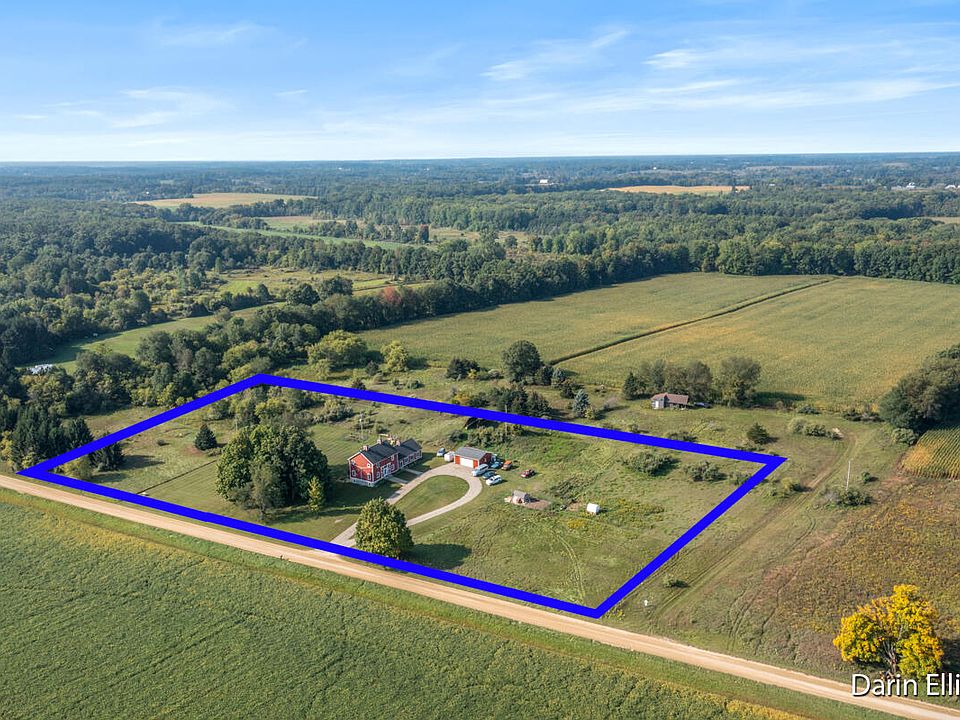 Gorgeous Colonial style Estate on 5 Acres. Nearly 3500 sq ft, 4 Bed, 3.5 Bath home with wide open floorplan. Country Kitchen with all appliances. New flooring, wall coverings, and fixtures throughout. Large Living space with beautiful wood burning brick fireplace. Upper level has 3 Beds including Full Master suite , 2 kids beds with built-ins, and separate laundry room. Full finished basement has 4th Bed/Office, rec area, and Theater Room. The 1200 sq ft indoor, inground, heated, saltwater pool with brand new pump and salt generator is a must see! In addition, this home comes fully equipped with Geothermal heating and cooling. Tons of other amenities including built-in gun safe, Wolverine water filtration and softener system, electric dog fencing, fenced pasture area, and turn-key chicken coop. Perfect setup and layout for that Hobby farm. A 30x24 pole barn completes the package. Carson City or Ionia Schools, you choose. Hurry to show!