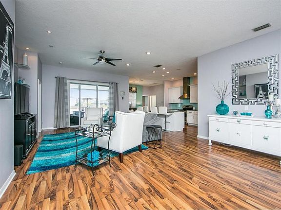 This Barrington Ridge on-trend home had a complete redesign that rivals the latest models. A bright and open plan allows a flexible layout that can adapt to your lifestyle. The three bedrooms surround a huge great room that opens onto an extended screened porch with a spa. In addition to the three roomy bedrooms, there is a large frosted glass-enclosed office. With a private hot tub overlooking a pristine lake, great for birdwatching and soaking up the brilliant sunsets and the community pool and playground directly across the street, you will enjoy soaking up the endless Florida sunshine without getting in your car.