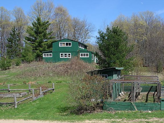 This affordable home on 48.61 acres just East of Afton may be the perfect option for you. The well maintained 3 bedroom home on a wooded site offers an open floor plan, large kitchen, and rear deck with a retractable awning. The garage has been converted to a family room for additional living space. The large barn, garden areas, and animal pens make this a great start to your gentleman's farm. The mix of open field and woodlands creates a diverse habitat. It even includes a custom built deer blind. This home is also available on 1.43 acres for $69,900. (MLS 307648)