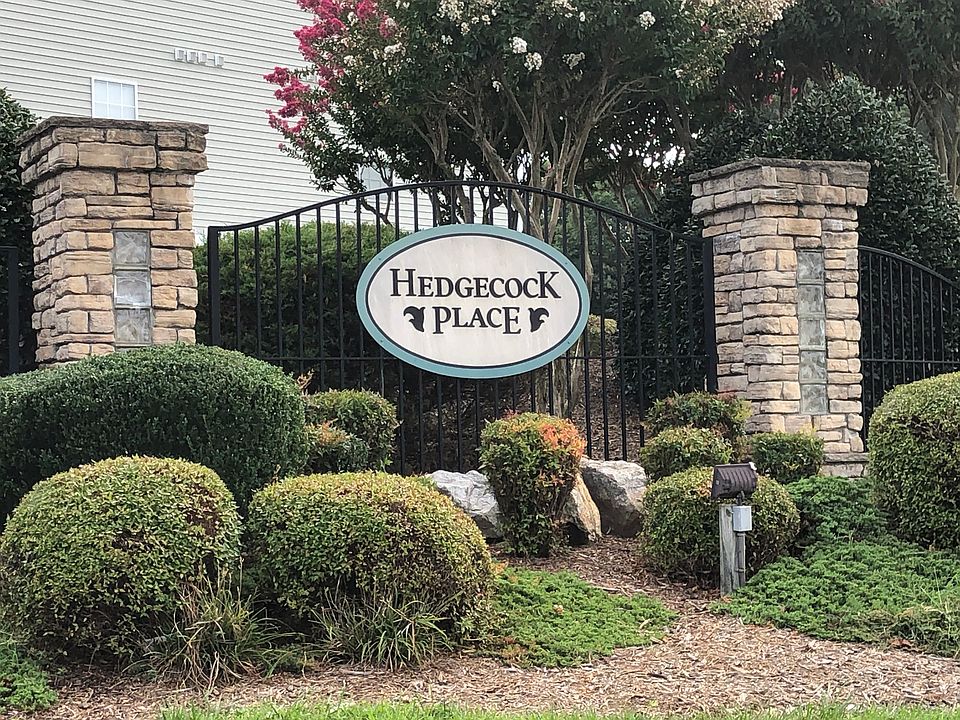 OPEN CONCEPT 2 BR/2 Full Baths located in desirable Hedgecock Place. A great ground floor unit w/a large Great Room, gas log fireplace, built-in shelves, lots of natural light and 2" blinds. The Kitchen boasts lots of storage, pantry & all kitchen appliances incl Refrigerator! There's a separate Laundry Rm, addtl storage, a Large Master with its own bathroom & Walk-in Closet. This condo is excellent for pets as the property is located on the back side of the building with access to an open field that cannot be built on. Neighbors Phillips Park Soccer Complex. Close to High Point Univ, shopping & restaurants! Water heater and carpet have all been replaced within the past year. The HOA dues includes water and sewer. Other utilities that are required is power and gas (water heater is gas).