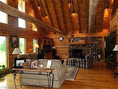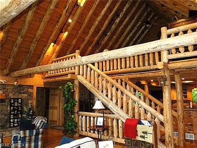 A must see to appreciate this stunning custom log home sitting on 10.86 scenic acres, wooded backyard. spacious open floor plan with vaulted ceilings, Hickory floors compliment the 1st level. Beautiful great room accented with a stone fireplace. Fabulous kitchen complimented with Hickory cabinets and stainless steel appliances. Bathrooms feature custom made cherry cabinets. impressive master suite includes it's own private stone fireplace, deluxe master bath. Large loft has pine wood floors. Inclosed sun porch, relaxing front and back decks, full bsmt with high ceilings.