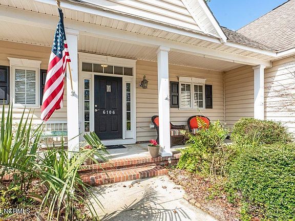 Tucked away at the end of a quiet street, this open floor plan home with 3 bedrooms and a bonus room offers wonderful living space along with pleasant bedrooms and lots of light. Enjoy cooking in the updated kitchen complete with neutral, solid surface counters, an induction stove, and a window at the sink. The dining and living areas include a vaulted ceiling, recessed lighting, a fireplace, lots of windows and access to the back via a tiled, screened porch. The master bedroom boasts a tray ceiling, large walk-in closet and an ensuite bath with double vanities, jetted tub and walk-in shower. Two more bedrooms, complete with ceiling fans, are on the other side of the living space and share a bath with tub. The large bonus room adds more living space for school, work or relaxing. Outside, the large yard is fully fenced and backs up to a wooded view. The garage includes a long workbench, storage closet and convenient tool storage. Sentry Oaks offers wide, quiet streets, and easy access from the front or back of the neighborhood. The whole HVAC system was replaced in 2015 and the hot water heater is newer as well. This beautiful, low maintenance home is close to schools, shopping and a short drive to Carolina Beach.