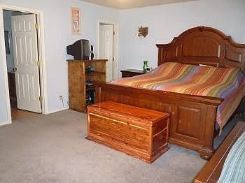 Don't miss out on this amazing opportunity to own a great home! This 3 bed, 2 bath, 2 car garage, 1440 sq. ft., is warm and open. The cozy living room has beautiful corner gas stove and tall vaulted ceilings with skylights. The bright and open kitchen has ceramic tile flooring, a large breakfast bar and all appliances stay (w/d and refrigerator). The grand master bedroom has a full bath, a large walk-in closet and direct access to the back covered deck. The large backyard is fully fenced with a side dog run, an open deck, and backs to a greenbelt. This home is a must see and it's not a short sale.