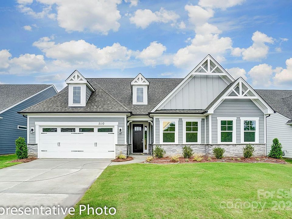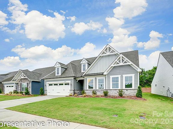 New construction in Indian Trail, a 55+ community with gorgeous amenities! This Sullivan plan has 3 bedrooms, 2 baths, and more than 2,200 square feet of living space. A study with French doors, covered rear patio, and outdoor living area with firepit and seating wall are all included. The beautiful kitchen has white cabinets and contrasting grey island, quartz counters, a tile backsplash, and stainless appliances, including a gas cooktop and wall oven. Other extras include a drop zone at the garage entry, tray ceilings in the foyer, dining room & primary suite and a gas fireplace with slate surround. All homes include Smart Home features, solid shelving in the pantry, comfort-height toilets in all baths, and year-round lawn maintenance. Enjoy the 7,000 SF amenity center features a grand hall, kitchen, game room, fitness center, outdoor bar, and more!
