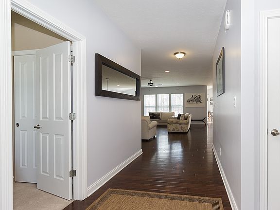 Like new 5 bedroom 3 bathroom craftsman style ranch on a corner lot with private view of the woods the back and spectacular sunrises and sunsets over the hills of Brown County. Beautiful lake views. Recently painted exterior. 3 car attached garage connects to spacious laundry room. The interior features beautiful hardwood floors through most of the main level. The spacious open floor plan is airy and luminous with 9+ ceilings. Beautiful kitchen with white cabinets, stainless steel appliances, black granite counters and large center island with prep sink. Office on main level could become 6th bedroom. Large master bedroom with walk in closet and deluxe bath with tiled shower and soaking tub. Finished walk out lower level features 2 bedrooms and Professional landscaping with irrigation system. Immediate possession. Access to all Tipton Lakes Amenities.