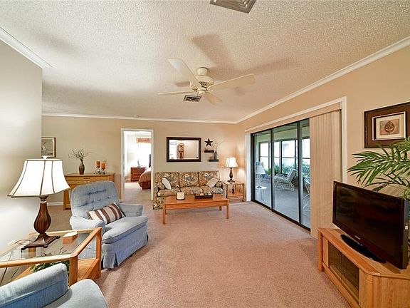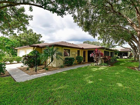 Located on a Cul-de-Sac this split plan villa with a master suite and guest ensuite offers one of the most expansive greenbelt view from the lanai. Extensive crown molding and newer baseboards throughout. Diagonally laid porcelain tile can be found in the kitchen and both bathrooms. Turnkey furnished with the convenience of a sleeper sofa for extra guests. Master Bedroom is newly tastefully furnished within the past three years. Updated light fixtures and the convenience of cable jacks in the kitchen, lanai, both bedrooms, and living room. Water heater 2011. Master suite offers a walk-in closet and walk in shower. The large enclosed lanai expands the entire length of the villa offering an expansive view of the greenbelt and pool beyond. Garage door, screened one third of the width, to allow for cross breezes. Low condo dues include exterior pest control and Sentricon preventative system for termites, roof repairs and replacement, exterior paint, heated community pool, and lawn maintenance. Centrally located to IMG Academy, State College of Florida, Target, Publix, and easy access to Bradenton Beach and Anna Maria Island. Being sold As-Is.