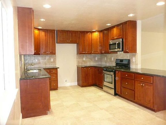 Complete remodel includes: all new kitchen with dark cherry cabinets, granite countertops, recessed lighting, SS appliances, tile backsplash and 16 inch tile flooring; 2 updated baths; new int/ext paint; new baseboards and light fixtures; new dual pane windows; new carpeting/pad; tiled hallways. Newer HVAC and dimensional comp roof. Covered & uncovered patios. RV access & pad. Auto sprinklers front & rear. Private rear yard. Large rooms throughout. Clear pest report. Close to all amenities.