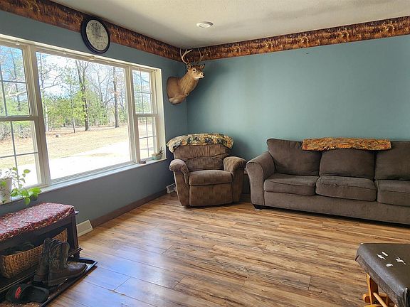 Nestled among mature oak and pine trees, this delightful 3-bedroom, 2-bathroom ranch home offers convenient first-floor living. The master suite is thoughtfully situated at the opposite end of the other 2 bedrooms, providing privacy and a spa-like retreat in the roomy master bath. The kitchen boasts ample counter space and cupboards, perfect for cooking and storage, and opens to the dining room, fostering great conversations during meal times. The dining room flows into the living room, which features a large window unit that fills the space with natural light. Step outside from the dining room onto the 12x12 foot deck, ideal for entertaining guests or enjoying the peaceful surroundings. The other two bedrooms are located on each side of the main bathroom, offering functionality and convenience. A highlight of the property is the 28x40 pole barn with concrete floors foam sprayed insulation, a garage door, a utility door, and 3 windows, providing plenty of space for storage or hobbies. Conveniently located, this property offers a 6-minute commute to Cadillac, making it a perfect blend of peaceful living and accessibility to amenities. Don't miss the opportunity to make this charming ranch your new home!