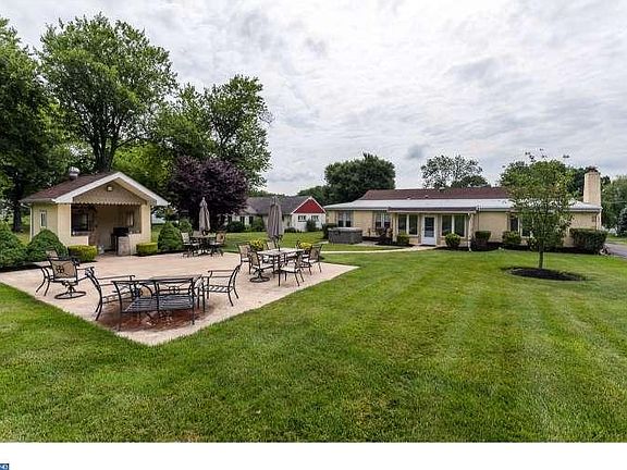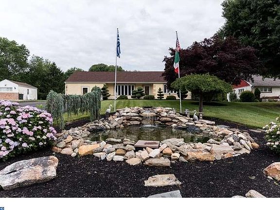 Welcome home to this delightful one of a kind roomy and updated Ranch style home with lots of glamour and updates too numerous to list, on the quiet and peaceful Washington Lane just steps away from the public park and athletic fields. With dazzling upgrades throughout and elegantly decorated, this beautiful home warmly greets you from the beautiful stone coy pond & waterfall at the front yard to the stone and slate front patio leading to the main entrance into the gorgeous formal living room with its alluring bay window and gleaming wide plank Brazilian cherry hardwood floors that flow throughout the home, a gourmet tile floored chefs kitchen with granite counter tops, upgraded 42" cabinetry, commercial grade stainless appliances and custom turned tile back-splash, an over-sized and exquisite dining room for those large family or holiday gatherings that walks out through custom leaded glass french doors to a tiled four season sun room leading to the beautiful backyard with stamped concrete patio and outdoor enclosed barbecue with all utilities (electric, water, and cable) and there is even an outdoor hot tub. The spacious family room is stunning and cozy with its stone fireplace with a wood burning fireplace insert, and roughed in wet bar (plumbing in place), and there is an additional tiled recreation/great room that leads to a second level private den/office or could also be used as a private 5th bedroom. The luxurious master suite has plenty of closet space and a beautiful en suite bath with a whirlpool tub surrounded by floor to ceiling tile. Completing the home are three additional spacious bedrooms and a hall bath. At the rear yard of this incredible home is a commercial grade 70' x 45' garage (3,150 square feet) with lots of rear parking that is perfect for your business / commercial use or car collection, or simply rent the garage out and have your mortgage paid. The garage has three 12' x 12' insulated garage doors that also includes security monitors. T