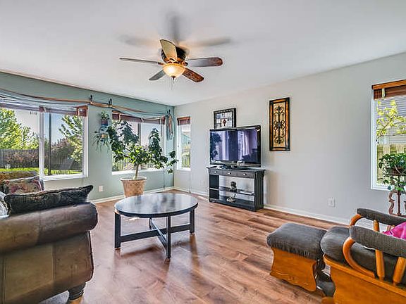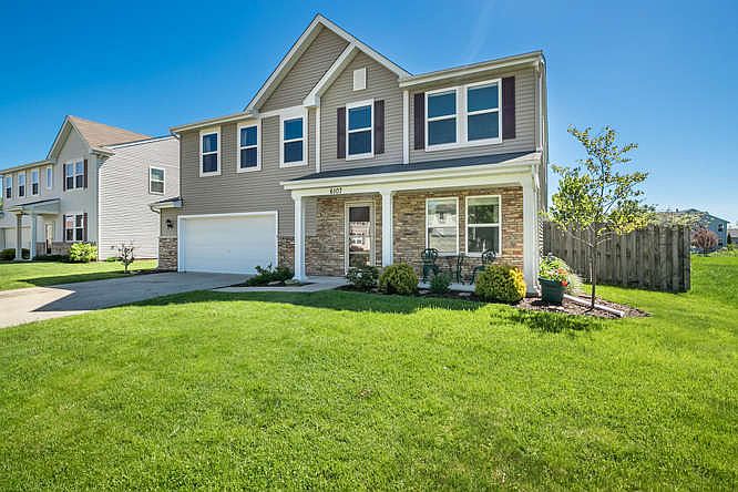 Beautiful, spacious and move in ready. Every room feels open and airy. Eat in kitchen offers maple cabinets, new flooring, solid surface counters, backsplash and newer appliances. First floor den/office, neutral decor. Second floor offers a large loft plus four spacious bedrooms and second flr laundry room that includes the washer and dryer. No basement but tons of storage and closet space throughout. Patio doors lead to to a gorgeous fenced back yard. Stamped concrete patio, mature landscaping, peach and apple trees that produce lots of fruit, garden, storage shed and lush manicured lawn. Heated, extra large garage features storage shelves, gated dog area and doggy door to backyard.