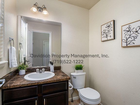 Welcome to this beautiful 4-bedroom, 3.5-bathroom house that offers both elegance and functionality. As you step inside, you'll be greeted by an open-concept layout that seamlessly connects the spacious kitchen, dining area, and inviting living room. The rich hardwood floors complement the sleek stainless steel appliances and dark cabinetry, creating a warm and modern atmosphere. There is also a half bathroom on the main level for added convenience. Heading upstairs you will find the primary suite with vaulted ceilings and an attached 5 piece bathroom with a double vanity and a large walk in closet. Two additional generously sized bedrooms share a full bathroom, also equipped with a double vanity. The laundry room, conveniently located on the upper level, makes laundry days a breeze. The finished basement provides a cozy family room, perfect for movie nights or additional living space. An additional bedroom and bathroom offer privacy and comfort for guests or family members. Step outside from the dining area onto a concrete patio, ideal for grilling or relaxing while enjoying the Colorado sunshine. The fenced-in backyard offers ample space for outdoor activities and playing. This home is complete with a 2-car garage, providing extra storage options, and central air conditioning throughout for added comfort. This stunning 4 bedroom 3.5 bathroom house is ready to be called home. All Davidson Property Management, Inc. residents are enrolled in the Resident Benefits Package (RBP) for $45.95/month which includes liability insurance, credit building to help boost the resident's credit score with timely rent payments, up to $1M Identity Theft Protection, HVAC air filter delivery (for applicable properties), move-in concierge service making utility connection and home service setup a breeze during your move-in, our best in-class resident rewards program, and much more! More details upon application. Cross Streets: Marksheffel Rd & Fontaine Blvd A/C- Yes W/D- Full size hookups - Not Included Dw, Ds, R, R/O, M/O *Special Requirements: May allow a small/medium dog As per House Bill 23-1099 1. The Prospective tenant has the right to provide to the landlord a portable tenant screening report, as defined in section 38-12-902 (2.5), Colorado revised statutes; and 2. If the prospective tenant provides the Landlord with a portable tenant screening report, the landlord is prohibited from: charging the prospective tenant a rental application fee; or charging the prospective tenant a fee for the landlord to access or use the portable tenant screening report.