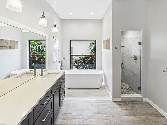 Golf Course Views in Coveted Misty Oaks Updated 3BR/4Br/3BA Pool Home! Location, location, location! Nestled in the highly sought-after Misty Oaks subdivision of Palm Aire, this spacious and thoughtfully updated 3-bedroom, 3-bath home sits on Fairway #7 of the Lakes Course at Palm-Aire Country Club. Enjoy sweeping golf course views from the master suite, living room, and expansive screened lanai. This single-story home features soaring 10' ceilings throughout, an open-concept living and dining area, and a vaulted-ceiling family room with a cozy fireplace and sliders leading to the private pool. The oversized, renovated master suite offers dual walk-in closets, a spa-like bath with a "secret garden" view, and direct lanai access. A split floor plan ensures privacy with two guest bedrooms and a full bath located on the opposite side of the home. The extended backyard is perfect for outdoor fun bring your volleyball net and enjoy the lush, scenic backdrop. Additional highlights include: - Newly updated finishes throughout - Large screened-in lanai & private pool - Oversized 2-car garage Prime location just west of UTC and minutes from downtown Sarasota, Lido Beach, and Siesta Key. Don't miss this opportunity to own a move-in-ready home with premium golf course frontage in one of Sarasota's most desirable communities! Owner provides garbage and water. All other utilities are tenants responsibility.