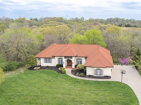 Welcome home to Parkville. This house is custom-built and offers an ideal floorplan. This house is a true ranch with a walkout basement- RARE. Looking for one-level living? The main floor features three bedrooms, an office space, two full bathrooms, one half bathroom, two living areas, a formal dining space, an eat-in kitchen, entryway, laundry area, a walk-in pantry and access to a screened-in deck. The lot is shy of two acres, backs to trees, is level in the front and features a side entry garage. The stucco on all four sides and Steel Coated roof offer a lower maintenance exterior. With 3,236 above grade square feet and 1,404 finished in the basement- this house is priced representing an exceptional value. Wanting to make cosmetic changes? The comparable sales support the investment. This is a potential moneymaker given the floorplan, the lot, and the location. The primary bedroom suite has exceptional views of the treed lot, a spacious walk-in closet, and is offset from the other bedrooms giving you privacy. The primary bathroom has a double vanity, large tub, and a spa-like walk-in shower. The finished walkout basement has a third living area, tons of storage, another full bathroom, another bedroom option and tons of unfinished room even if you want more than the current 4,600+ square feet. Whether you are looking for easy highway access or great schools, this is it. The Tiffanys is a great neighborhood- but even better there are no HOA dues. All bedrooms are a nice size and three of them feature walk-in closets. You will love the side-entry three car garage. Enjoy privacy and nature from the large deck. Additional bonus features include- custom wrought iron features, security system, stainless steel kitchen appliances, high ceilings, and lower taxes from being in unincorporated Platte County. Call today!