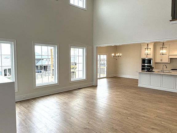 NEARLY COMPLETE! Spectacular home in the popular BRENTWOOD subdivision in Crestwood. You will love the detail and quality finishes here! Cul-de-sac location with welcoming CUSTOM ARCHED ENTRY and two story foyer. STUNNING HARDWOOD laminate through main level. Vaulted GREAT ROOM with a wall of windows, gas fireplace that is open to the GOURMET KITCHEN with an abundance of white cabinets, QUARTZ COUNTERTOPS, cabinet pantry, center island with barstool seating and breakfast dining area with access to DECK overlooking sizable (nearly ½ acre) backyard. Formal dining room. Perfect set up for entertaining! Impressive FIRST FLOOR PRIMARY BEDROOM with accent wall molding and large windows.
