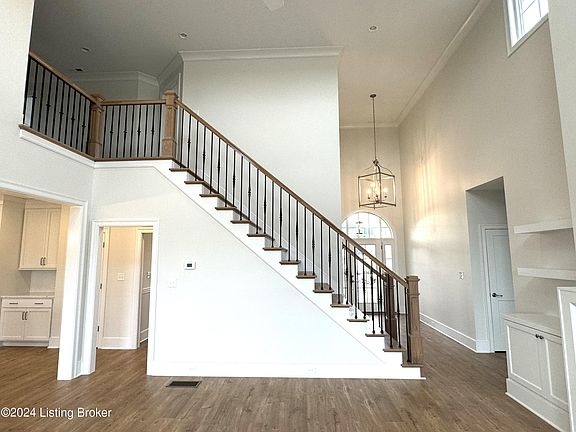 Primary bath with walk in closet, dual sink vanity, SEPARATE SHOWER and FREE-STANDING TUB. Convenient first floor laundry next to the 3 CAR GARAGE access with adjacent built-in cabinet with hooks and cubbies and stylish half bath. The second floor boasts 3 large bedrooms, one with a personal full bath and the other two bedrooms linked with a Jack and Jill bath. The WALKOUT BASEMENT is substantial and already framed for a bedroom and recreation area and has roughed in plumbing for a full bath. Plenty of storage areas too. So convenient to shopping and Hwy 22 or I-71. Neighborhood has a swimming pool, tennis courts, and a clubhouse. Dual HVAC. Desirable Oldham County schools. QUALITY CONSTRUCTION. Details throughout. So much to offer here. Call today!