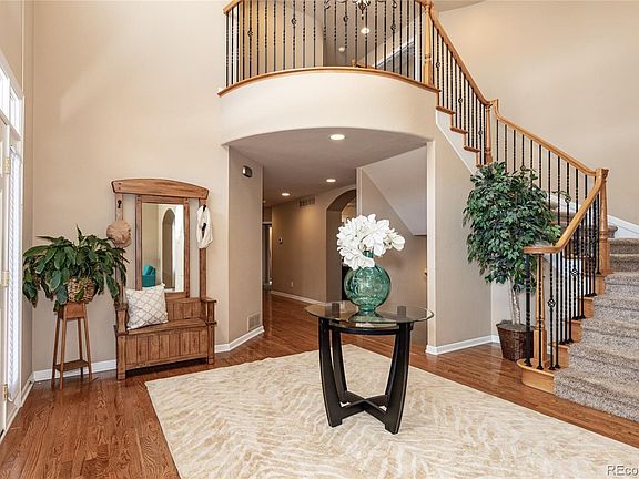 Beautiful 4100+ sq ft Tuscany/Sienna 2 story with main floor guest bedroom suite, expansive mountain views, huge kitchen and unbelievable master suite! 5 bedrooms 5 bathrooms, WOW! Backyard features a unique covered BBQ area for entertaining! Quality build- mostly brick home with concrete roof tiles! Huge unfinished basement is insulated and ready for your personal finishes. Two blocks to Falcon Creek Middle School and minutes to shopping/Southlands, and E470. Community pool, tennis courts and parks complete this fabulous home!