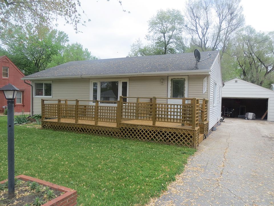 House has new carpet, paint, refinished hardwood floors, updated bath and kitchen (appliances stay). Upstairs is 3 bedroom, 2 bathroom, breakfast nook in kitchen, dining area open to living room with 948 sq ft total. Basement is also 948 sq ft, finished with a family room/bar area, 1 nonconforming room, 1 bathroom and utility room. Water heater is new. There is an enclosed back porch with a breezeway attached to the garage which is insulated and heated. Behind the garage is a concrete slab for a dog run. Back yard is fenced and has a large concrete patio w/bar, shed, garden spot, 2 apple trees, 1 pear tree and a grape arbor with seating.