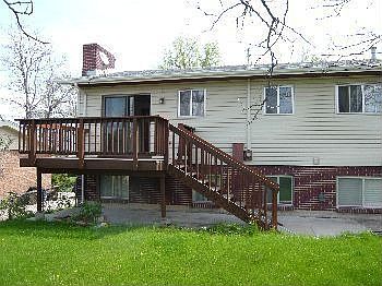 Bi-Level House with 4 bed, 2 bath, 1 family room with fireplace, 1 living room. 2 attached garage, large backyard with deck for entertainment.