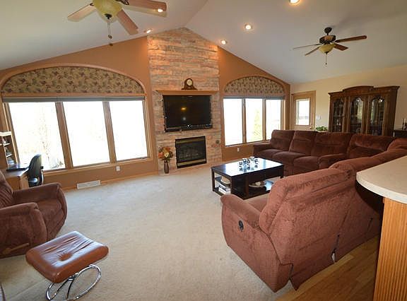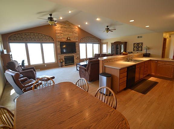 Beautiful open concept ranch offering gorgeous western views & sunsets. Walk out lower level offers a rec room, 4th bedroom & full bath. The seller recently installed a brick paver patio with firepit & hot tub. Can't beat the outdoor living at this home. The kitchen/great room is a large gathering space perfect for entertaining. Gas fireplace w/large windows on each side. 3 spacious bedrooms, mud room & 2 full bath. Newly installed well pump, pressure tank & UV filter system. Quiet no thru street.