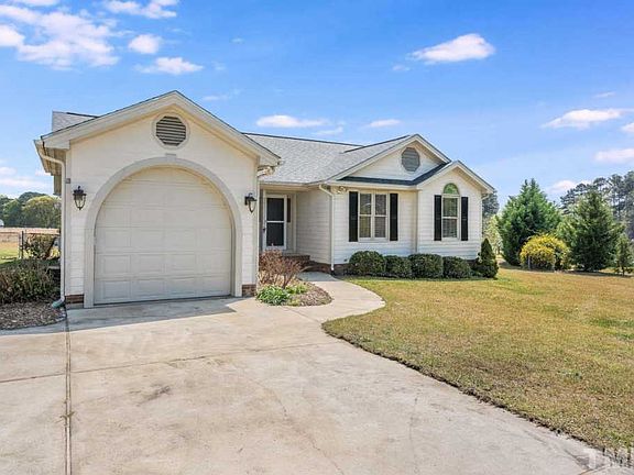 OVER 1ACRE LOT! No HOA or city taxes! Charming ranch w/single car garage in the country! 1acre culdesac homesite w/fenced backyard has large deck. LR w/vaulted ceilings & a fireplace. KIT w/granite countertops & pantry. Wall to wall built-ins in the dining room. Beautiful hwoods throughout main living areas. MSTR STE includes walk-in closet & private luxury bath. Newer roof & HVAC. Organic permaculture garden w/fruit trees, berries, & veg beds. SEE MLS DOCS for impt info. Mins to HWY401 & DWNTWN RALEIGH