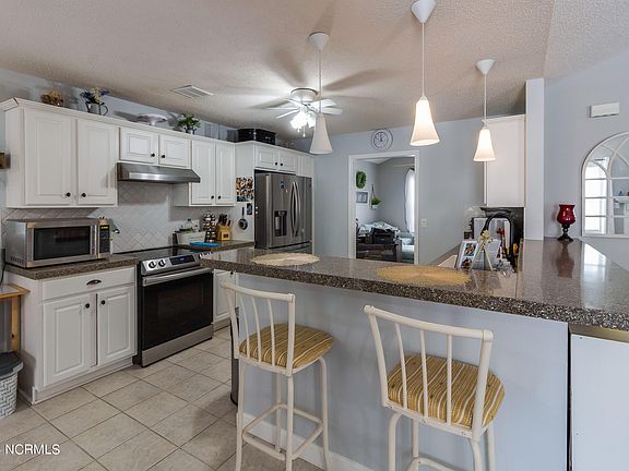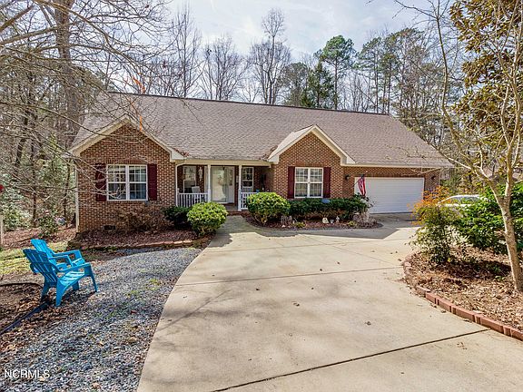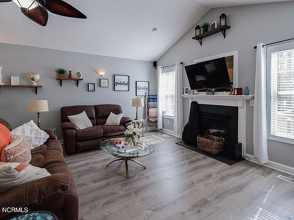 Beautiful home in gated Carolina Trace community! Features an open floor layout with tile floors, crown molding and columns in foyer. LVP floors, cathedral ceilings, crown molding, cherry wood ceiling fan and fireplace in family room. Kitchen with tile floors, coffee bar, granite overlay counters, smooth top oven, pendant lighting, under cabinet range hood and white tile backsplash. The primary bath offers a dual vanity, whirlpool tub, tile floors, WIC, water closet, separate shower and linen closet. Upstairs second master with full bath, LVP floors and ceiling fan. Home sits in a quiet cul-de-sac surrounded by lots of nature, beautiful rose shrubs, apple and pear trees. Large sunroom, circular drive and deck on the back. Must come see!!