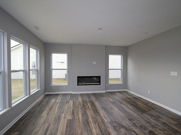 As you step into the foyer of this single family home, the flex room and staircase welcome you. Your family room, complete with an electric fireplace, sits to your left across from the dining area with an extended nook and the kitchen to your right. A large kitchen island makes preparing large meals a breeze! You'll find the owner's entry, with access to the 2.5-car garage, just off the kitchen near the powder room. The laundry room and loft separate your owner's suite from the 2 additional bedrooms and bathroom. Discover your owner's suite and notice the tray ceiling above and your spacious walk-in closet. The en-suite owner's bathroom sits across from the walk-in closet and holds a dual-sink vanity, a toilet area, and a shower.
