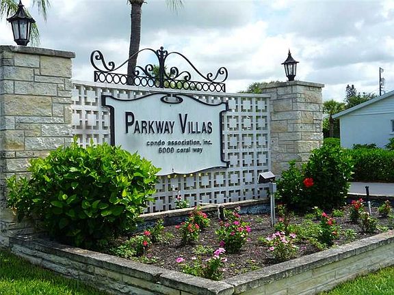 Popular Parkway Villas at an affordable price. 2 bedroom, 2 bath unit in an active 55Plus community with recreation building, heated pool, shuffleboard and pool table. Well run association maintains good living standards with low monthly fees of $217. Conveniently located close to shopping, restaurants, library and public transportation. No dogs or cats allowed, the only pets permitted are small caged domestic birds. The condo association takes cares of the lawn, landscape, recreational facilities, exterior maintainance and the roof. Basic cable also included in condo fees. Buyer's cannot rent in the first year of ownership.