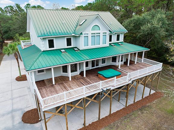 A Rare Opportunity to own a fabulous 3.5 acre estate in Romain Retreat! Estate consists of the Main Home with Dual Masters, a three stop elevator creates easy access to all floors. Garage is 1700 sq. ft. of enclosed space! It is amazing! A ''cooks'' kitchen is the heart of the home with plenty of space and storage for all the items you could want. Subzero refrigerator and separate freezer, walk in '' Costco'' storage, wine cooler, double ovens and warming oven are all in place. The 2 bdr 2ba Cottage is perfect as an in-law residence, for guests, or as a rental. Full front porch and screened in back porch are the finishing touches. All this and 3.5 acres of wooded privacy within 10 minutes of hospitals & stores.Situated on a wooded lot with magnificent Live Oak Trees and Palms, this estate excudes Low Country Charm and character. Expansive decks and porches on both dwellings bring you closer to nature. Watch hawks and owls fly, deer shyly feeding in the yard and red foxes are often seen with their pups. Bring your boat as the Romain Retreat Neighborhood comes with access to the private community dock and boat landing, and shelter. Often , people gather there to share a pot luck dinner with friends and other families or to have a party. Access to medical care ( MUSC and Roper) , and Publix and Costco and many fine restaurants are just 10 to 15 minutes away. Romain Retreat also provices access to some of the best fishing in some of the most pristine water along the entire east coast.