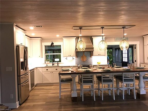 This home has just been updated! New throughout - floors, paint, fixtures, front & interior doors, cabinets, countertops, window blinds, the list goes on! Large great room with beautiful kitchen featuring a custom stove hood, decorative tile backsplash, quartz countertops, stainless appliances, LOTS of cabinets. Through the french doors is the large family room with new carpet tiles over the original terra-cotta floor tiles (same as the front entry way) just pick up the carpet if you prefer tile! Master bedroom w/shiplap feature wall, walk-in closet, sliders to the screened lanai. French slider doors into the bath, two sinks, all glass shower door, and large built in wall cabinet. Laundry hook-ups are in the garage with a large sink, cabinets & plenty of work space. Lots of extra storage in the attic with plywood flooring. Back yard features a row of Areca palms for privacy, a screened lanai with access from the Master or Family room, a brick patio perfect for grilling or entertaining, and large storage shed. Addtl driveway with plenty of room for your RV/boat. Vol HOA has gulf access launch & more amentities for $240/yr. Roof 2005 Wall A/C 2020 A/C, Ducts, Water Hter 2019. AS IS