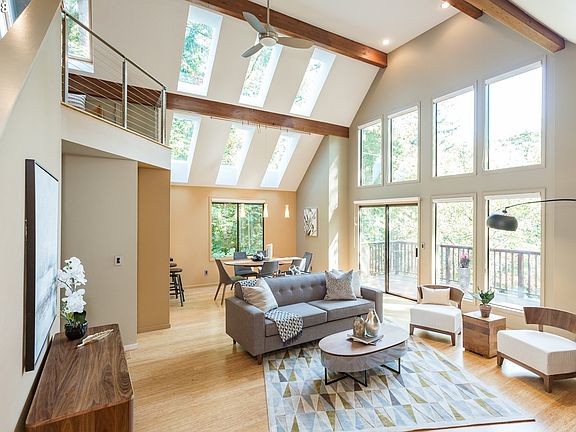 Mod Hayhurst Contemporary! Serene retreat minutes from DT. Soaring cathedral ceiling & floor to ceiling windows overlook lush greenness. Open floor plan w/remodeled kitchen, bamboo flooring & natural stone wood burning FP. Master retreat: walk-in closet w/clear fir doors, operable skylight for view of night stars & luxurious remodeled master bath w/walk-in shower & soaking tub. Gorgeous lot and landscape. [Home Energy Score = 5. HES Report at https://api.greenbuildingregistry.com/report/hes/OR10040681-20180814]
