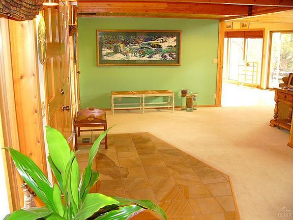 Picturesque pvt mtn setting w/4.76 acres, abuts 39 acres of government land-potential horse property! Huge vaulted cedar ceilings w/walls of floor to ceiling windows capture distant mtn views. Spacious great rm enjoys lg kitchen w/informal dining area:granite counters/maple cabinetry/wood flrs. 2 lg bdrms on main w/full bath for guests. Wooded staircase ascends to lg mstr bdrm w/wall of windows for more mtn views. Triple detached garage w/shop+dog run. Plenty of space for outdoor entertaining w/rear patio.