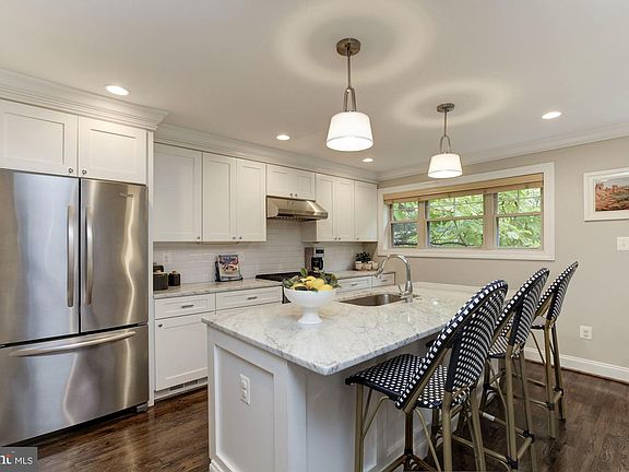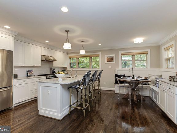 Welcome to 6109 14th St NW, an architectural gem perfectly located in Brightwood DC, blocks from both Georgia Ave and Rock Creek Park. The original exterior from 1936 features an Art Deco-style covered front porch. Step inside to beautiful renovations and hardwood floors throughout. The sunken living room features a fireplace with custom molding and abundant natural light from the large bay window. The kitchen provides white cabinets, stainless steel appliances, gas cooking, marble counters and kitchen island with plenty of seating. A built-in dining bench makes for the perfect breakfast nook, and a bar with wine refrigerator perfectly adjoins the spaces. An updated half bath with pocket door completes the first level. Upstairs, you will find a large master bedroom with vaulted ceilings, a bay window, large walk-in closet, and an ensuite bathroom featuring a marble shower and double vanity with storage. The second level also offers two additional bedrooms, full bathroom, and a linen closet. The lower level includes a fourth bedroom with walk-in closet, full bathroom, laundry room, storage, and marble-countered wet bar. In addition, a private rear entrance leads to the fully fenced backyard with two car parking with garage door. This move-in ready home is a perfect 10/10 - ideal location, stylish updates, and outdoor living. Check all your boxes at 6109 14th Street NW!