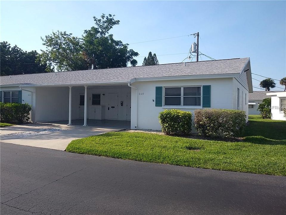 Lowest priced unit in one of Bradenton's best maintained affordable communities PLUS includes a $485 home warranty with OLD REPUBLIC! The carpeting in the unit has been removed and is ready for your own designer touches. Bathroom has a walk-in shower and both bedrooms feature walk-in closets. Don't be mislead by the super low maintenance fee; this active 55+ community has an abundance of amenities, including an 8' deep resort-style solar heated pool, shuffleboard courts, a clubhouse with a billiard table and sauna, and many planned social activities during the season. The exterior was painted and a new roof installed in 2018. A washer/dryer hook up can be installed in one of the closets or you can use the public facilities directly behind the unit or at the clubhouse. If you're looking for a place you can be proud to call home that won't break the bank, this is it. Ideally located between Bradenton and Sarasota, convenient to shopping, restaurants, beaches, Sarasota's renowned cultural facilities and a short walk to the library.